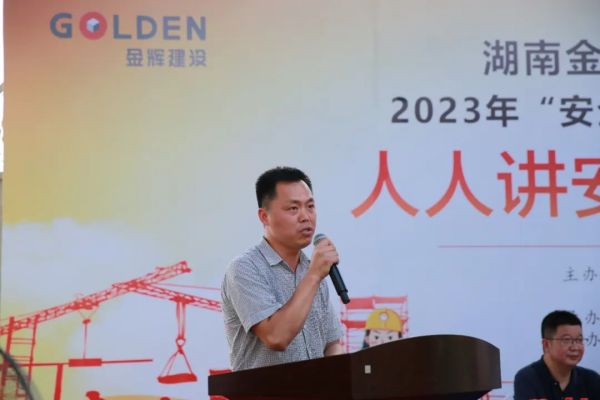 活動儀式上,湖南金輝建設(shè)集團有限公司總經(jīng)理雷泓致詞表示,通過開展此項活動,進一步增強廣大職工對安全生產(chǎn)重要性的認識,鞏固和擴大安全生產(chǎn)成果,進一步提升公司安全生產(chǎn)水平。安全工作是事關(guān)職工群眾生命安全及企業(yè)健康良性發(fā)展的大事,要始終把安全生產(chǎn)要求貫穿到各項工作全過程,牢牢守住安全生產(chǎn)底線,堅決防范遏制各類事故發(fā)生。