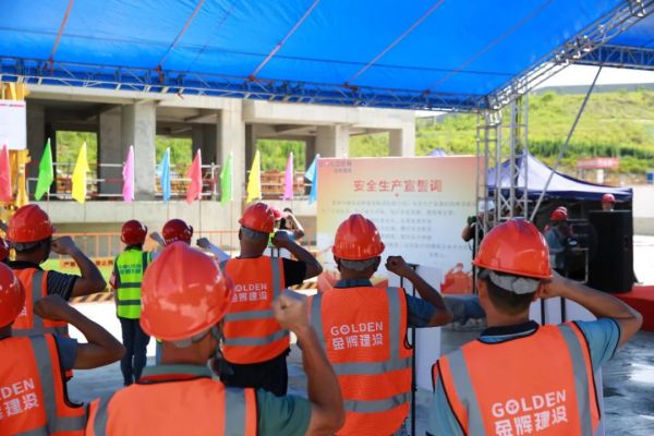 領(lǐng)導致辭后,金輝建設(shè)集團植基路項目部全體人員及工人代表進行了安全生產(chǎn)宣誓,鄭重承諾:時刻注意安全,認真按章作業(yè);遵守安全法規(guī),履行安全職責;嚴守規(guī)章制度,提升安全技能。不違章,不冒險,不留安全隱患!以實際行動確保企業(yè)安全生產(chǎn)!