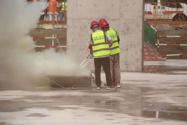 本次活動就施工現(xiàn)場突發(fā)火災應急和人員受傷等意外情況進行應急救援演練,演練內(nèi)容包括預警與報告,指揮與協(xié)調(diào),應急通訊,警戒與管制,疏散與安置,醫(yī)療救治,現(xiàn)場處置,后期處置等。演練在急促的警報聲中正式開始,施工建筑因故起火燃燒,聽到呼救聲后,現(xiàn)場搶救組和保衛(wèi)疏散組立刻拉開警戒,開展一線搶險工作;醫(yī)療救護組迅速展開急救,其他小組按照分工馬上投入救援,所有人員按照應急疏散預案要求全部疏散撤離至安全地點。同時,火情也在現(xiàn)場人員的緊急處置中得到控制。