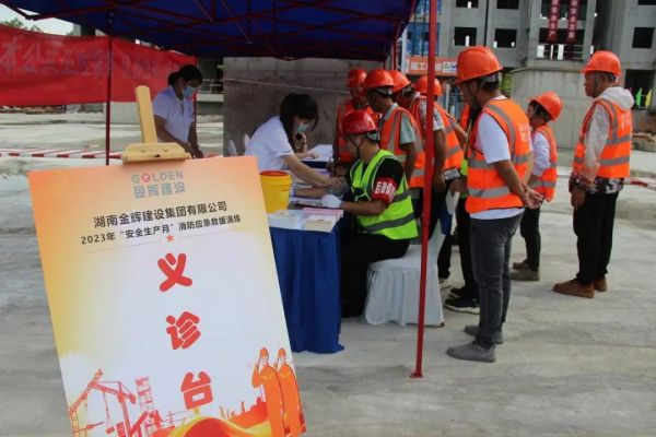 在本次演練過程中,金輝建設(shè)集團本著“人民至上、生命至上”的宗旨,特邀請長沙市開福區(qū)青竹湖街道社區(qū)衛(wèi)生服務中心組織開展義診活動,對農(nóng)民工兄弟進行身體檢查,為他們提供測血壓、測血糖等服務,并向他們講解健康保健知識,使工友真切感受到公司的關(guān)心和溫暖。